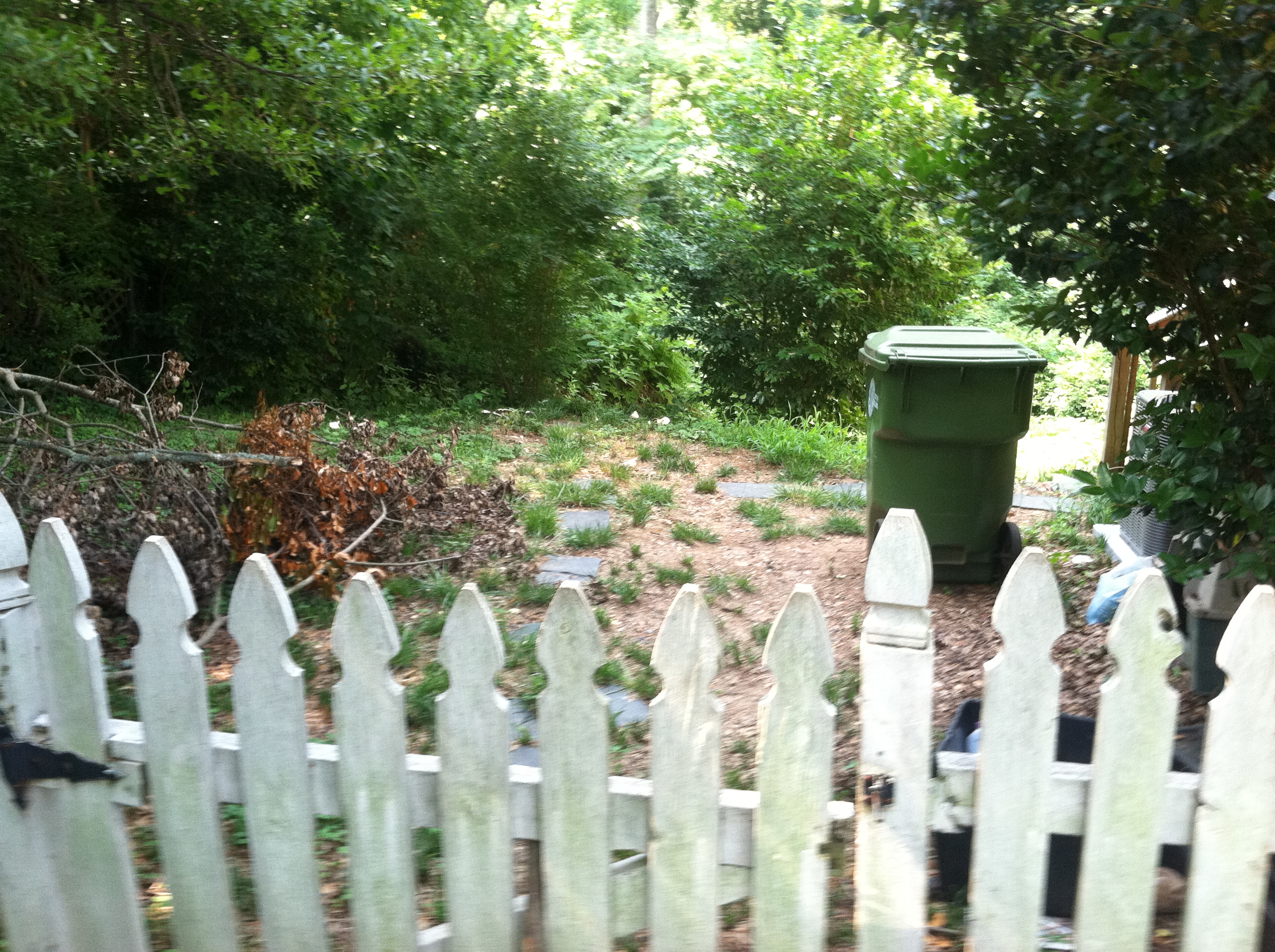 Here is the transition into the back yard, at the top of the hill, overlooking the back yard